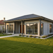 100 m² tek katlı çelik ev, gelişmiş yalıtım, iç mimari danışmanlık, elektrik ve su tesisatı dahil, anahtar teslim kurulum.